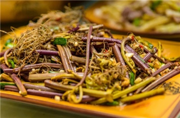 龙头菜就是蕨菜,原本是一种天然野菜,现在市面上也有了不少人工种植的蕨菜。蕨菜的营养优势在于富含矿物质钾和胡萝卜素,前者对控制血压有帮助,而后者则可在体内转化为维生素A,对眼睛和皮肤的健康有益。