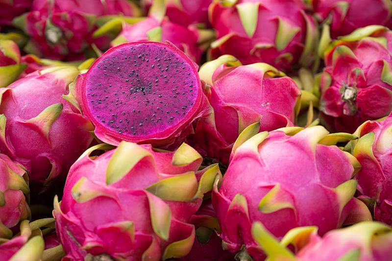 这水果大家可太熟悉了,属于仙人掌科的植物,因为果皮有点像龙的鳞片,所以被称作“火龙果”。它的膳食纤维在水果中还算不错,比我们常吃的苹果、橘子、橙子、桃子等都要高,特别是里面的小黑籽,是膳食纤维的主要贡献者。至于红心火龙果的颜色,主要来源于甜菜红素。