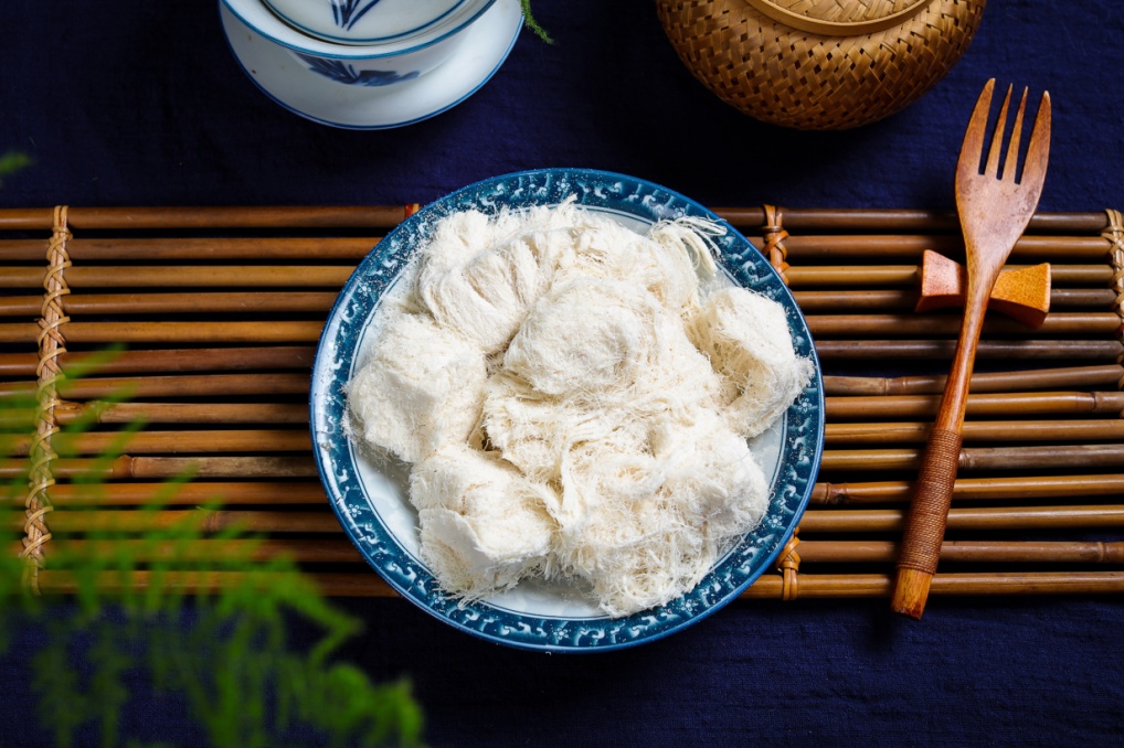 龙须酥是我国的传统特色小吃,外表洁白或偏黄,细如龙须、层次分明、入口即化、甘甜酥脆。一般是用白糖和麦芽糖浆经过不停地反复地拉伸折叠,直到每一个糖丝薄如发丝,同时会裹上豆面之类的原料,也可添加花生碎、芝麻碎等辅料。