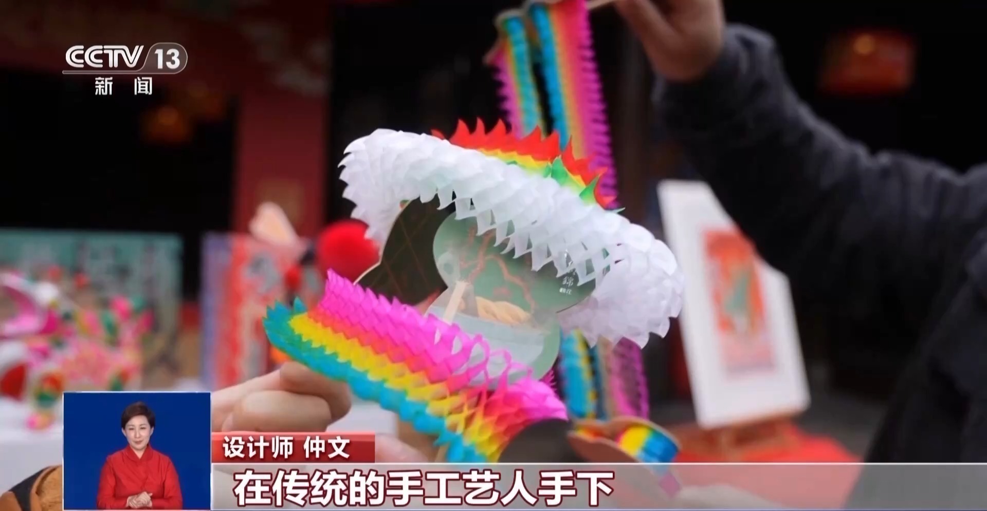 设计师 仲文:其实在很多地方小时候我们都玩过,在传统的手工艺人手下,它能变成72翻。里面有很多很多造型啊,什么孔雀花、喇叭花都不一样,然后老虎口,老鹰睡大觉,它可以不停地翻,不停地转。