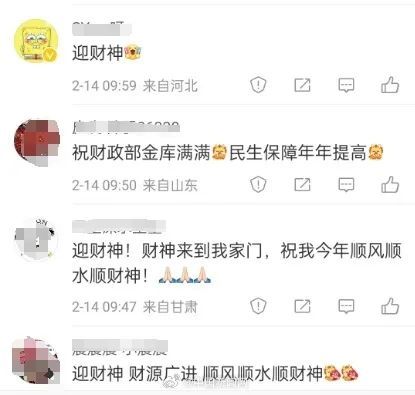 2月14日是农历大年初五,相传正月初五是财神爷的生日,所以这一天是很多地区“迎财神”的日子。