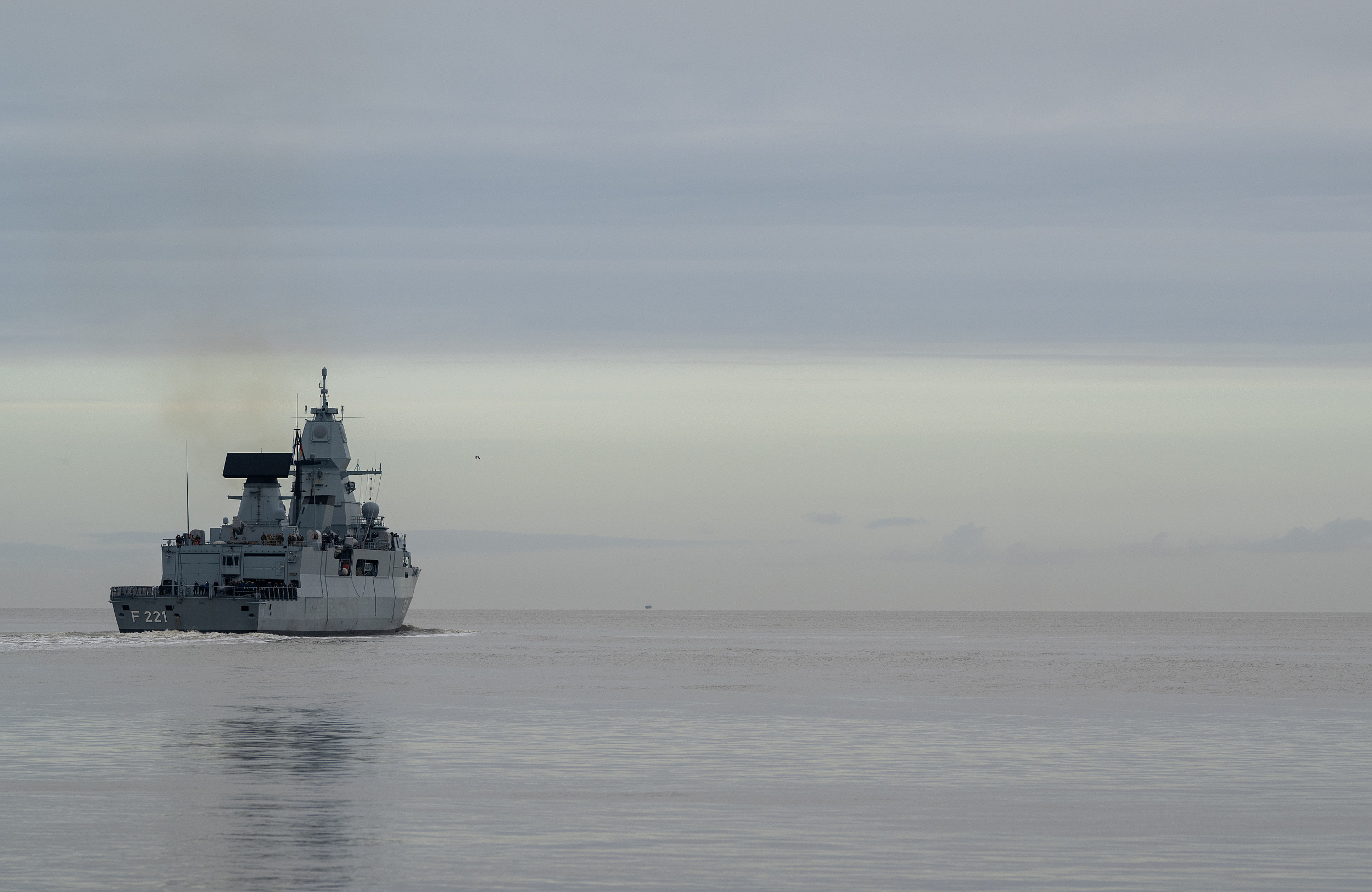 当地时间2024年2月8日,德国威廉港,德国"黑森"号护卫舰出发前往红海部署。视觉中国 图