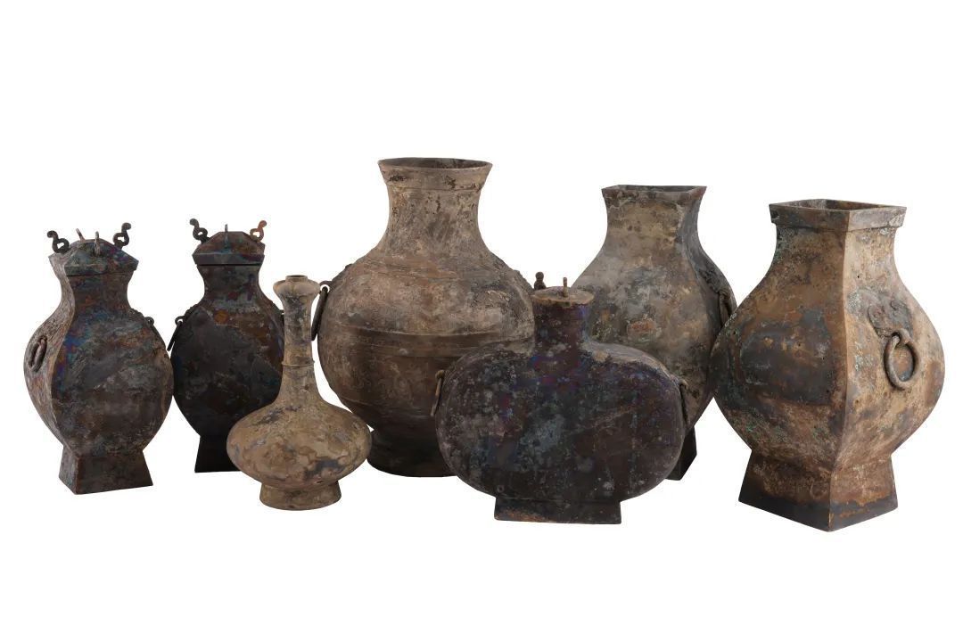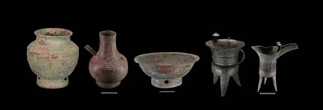 △ M2出土铜罍、盉、盘、斝、爵(M2 :1、2、23、3、8)