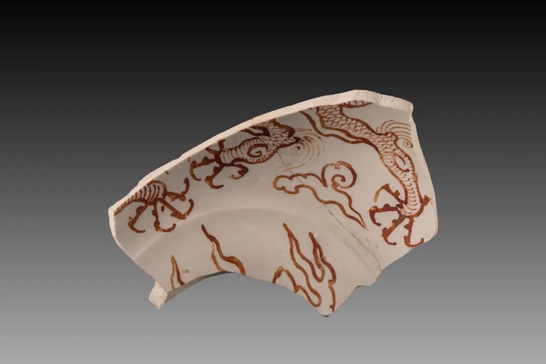 △ 明代细白瓷矾红彩云龙纹碗 (藩王府用瓷)