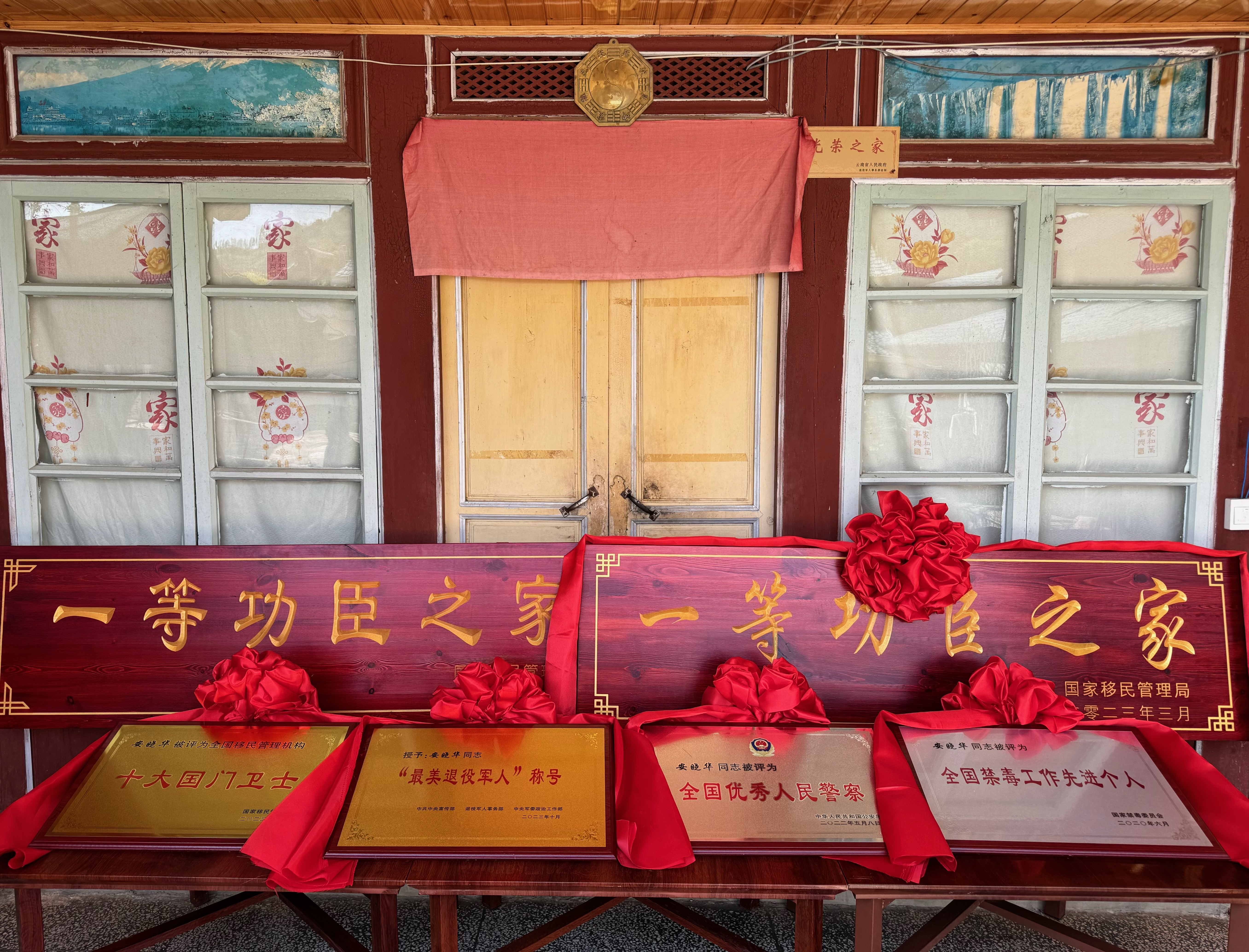 没有锣鼓喧天、没有披红戴花。2月20日,云南保山边境管理支队组成的“喜报到家团”,清晨静悄悄地来到安晓华家中,为其一家送上“一等功臣”“全国最美退役军人”“全国优秀人民警察”等多块功臣牌匾。由于安晓华长期战斗在禁毒工作一线,“送匾”一行人只能“无声”地将喜报送到家,虽然没有敲锣打鼓的热闹场面,但在安晓华家中的两块“一等功臣”和多块功臣牌匾在阳光照耀下,十分璀璨夺目!