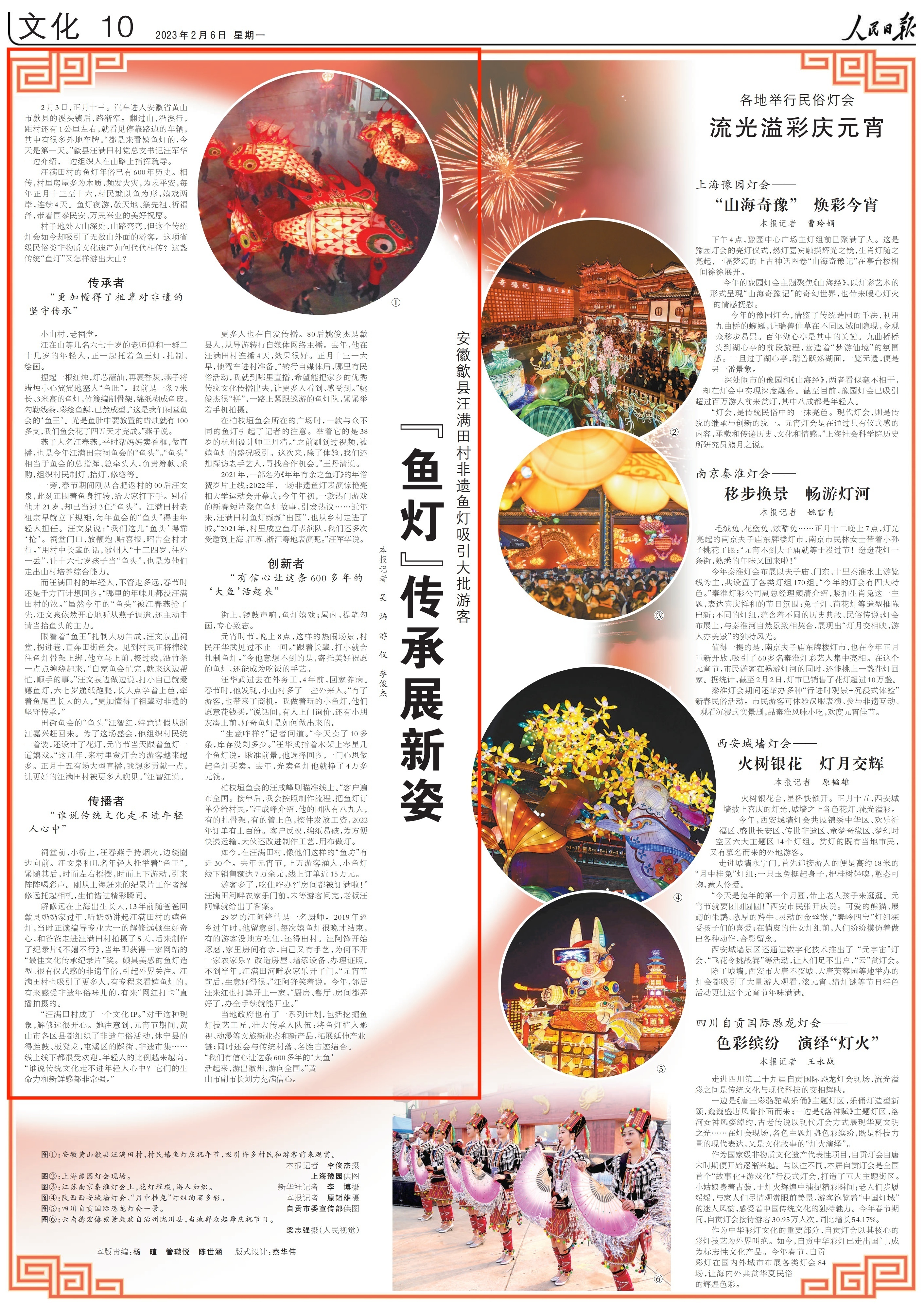 如今,在汪满田,像他们这样的“鱼坊”有近30个。去年元宵,上万游客涌入,小鱼灯线下销售额达7万余元,线上订单近15万元。