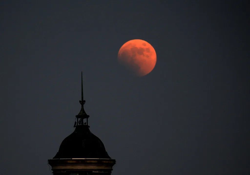 红月亮指满月时发生月全食,此时月亮进入地球的影子里,太阳无法照到月亮上。但会有其他光线通过地球大气层折射、散射到月亮表面,使月亮看起来发红。
