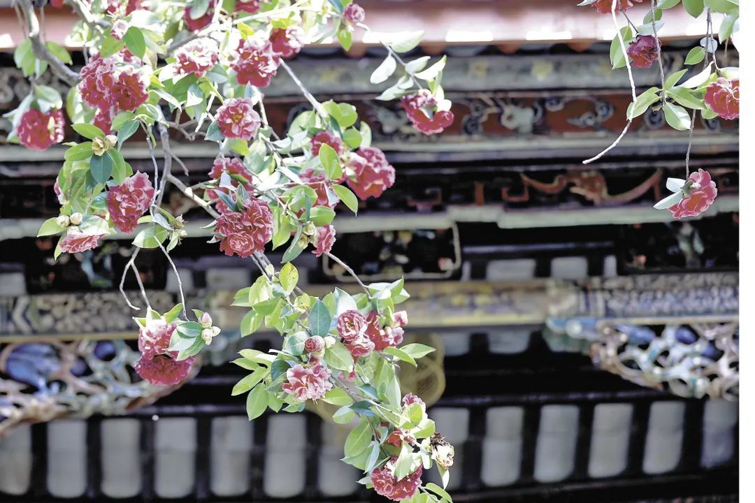 昆明城内,无寺不栽山茶花。九心十八瓣的“狮子头”其色或深或浅,是昆明保存古树最多的品种之一。昆明安宁清泰庵的两株“狮子头”树龄已经超过600年,每逢花期,万千红艳,挂满枝头。