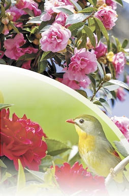 下图:鸟儿落在山茶花上。中国科学院昆明植物研究所供图