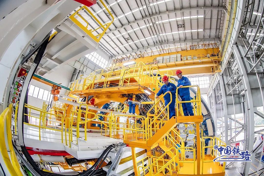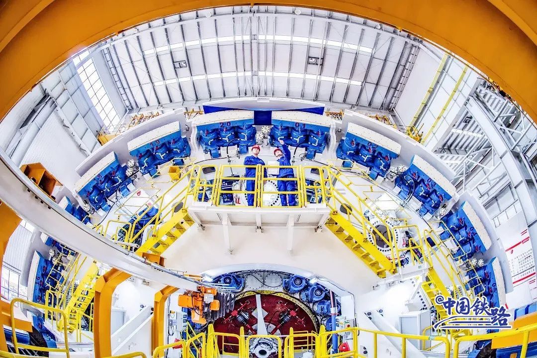 “甬舟号”盾构机全长135米,总重量4350吨,配备特制刀具308把,刀盘开挖直径14.57米,总装达到世界一流水平。