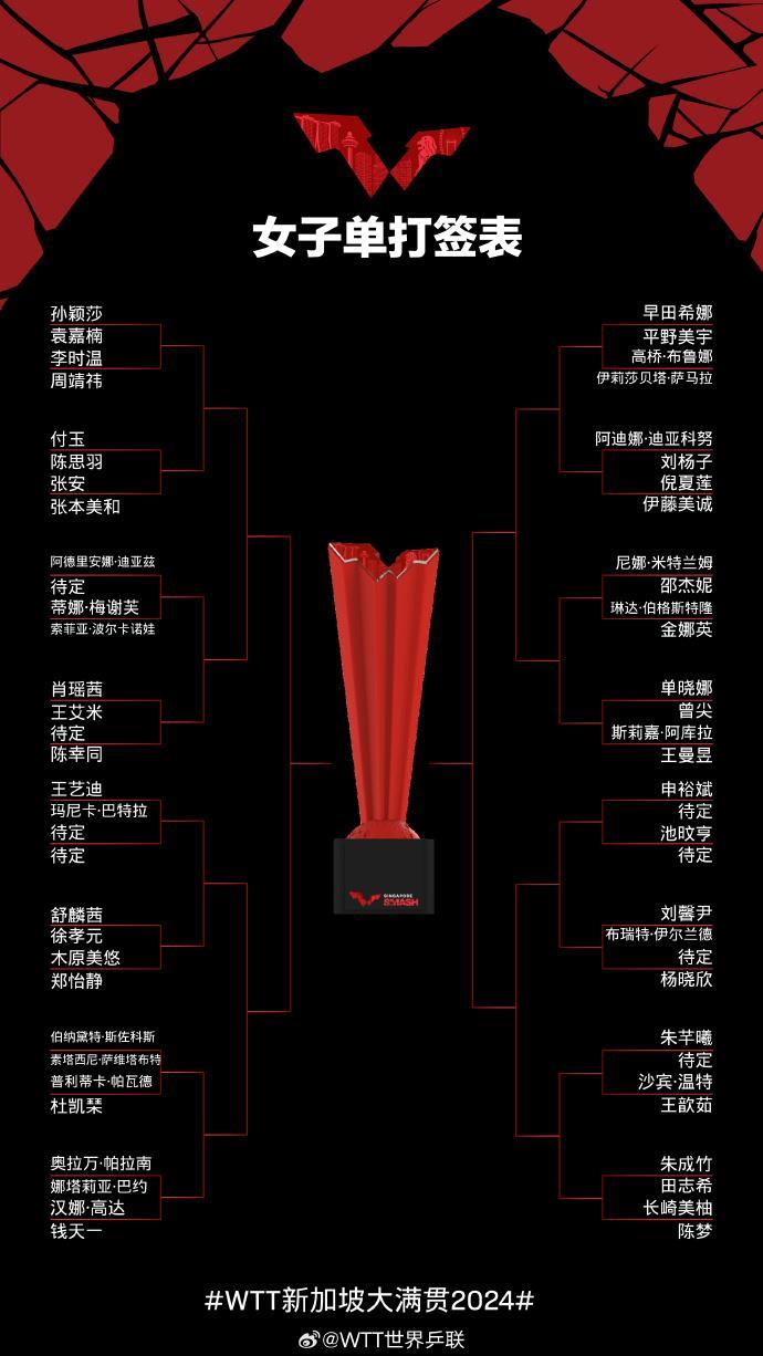 WTT新加坡大满贯赛签表出炉:樊振东、马龙同半区