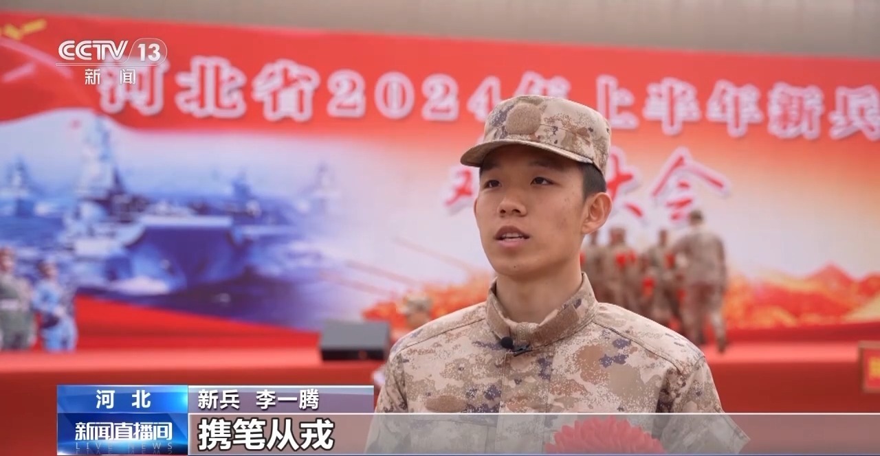 新兵李一腾:作为一名大学毕业生,携笔从戎、保家卫国的理想就要实现了。在今后的军旅生涯中,我将用我所学的知识,为部队添光,为家乡添彩。