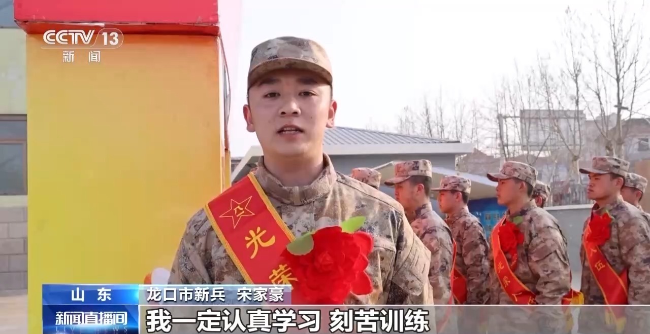 龙口市新兵宋家豪:今天我成为一名光荣的解放军战士,到达部队之后,我一定认真学习,刻苦训练,早日为家乡增光添彩。