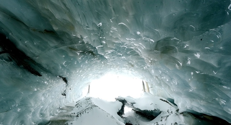 近日,西藏昌都市边坝县边坝镇普玉二村境内又发现一处大型双层冰洞—然普冰洞,与贡嘎冰洞直线距离约15公里,冰洞内部成螺旋上升型结构,据初步勘测,贯穿的冰洞长约300米,底层冰洞洞口约30米高,9米宽,上层冰洞为双向洞口约12米高、8米宽。这是目前边坝县发现的第三个大型蓝冰洞。(图由斯郎曲平摄 )