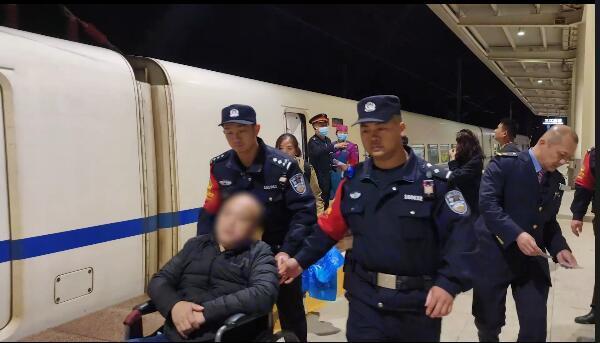 民警开辟绿色通道将旅客送出站。