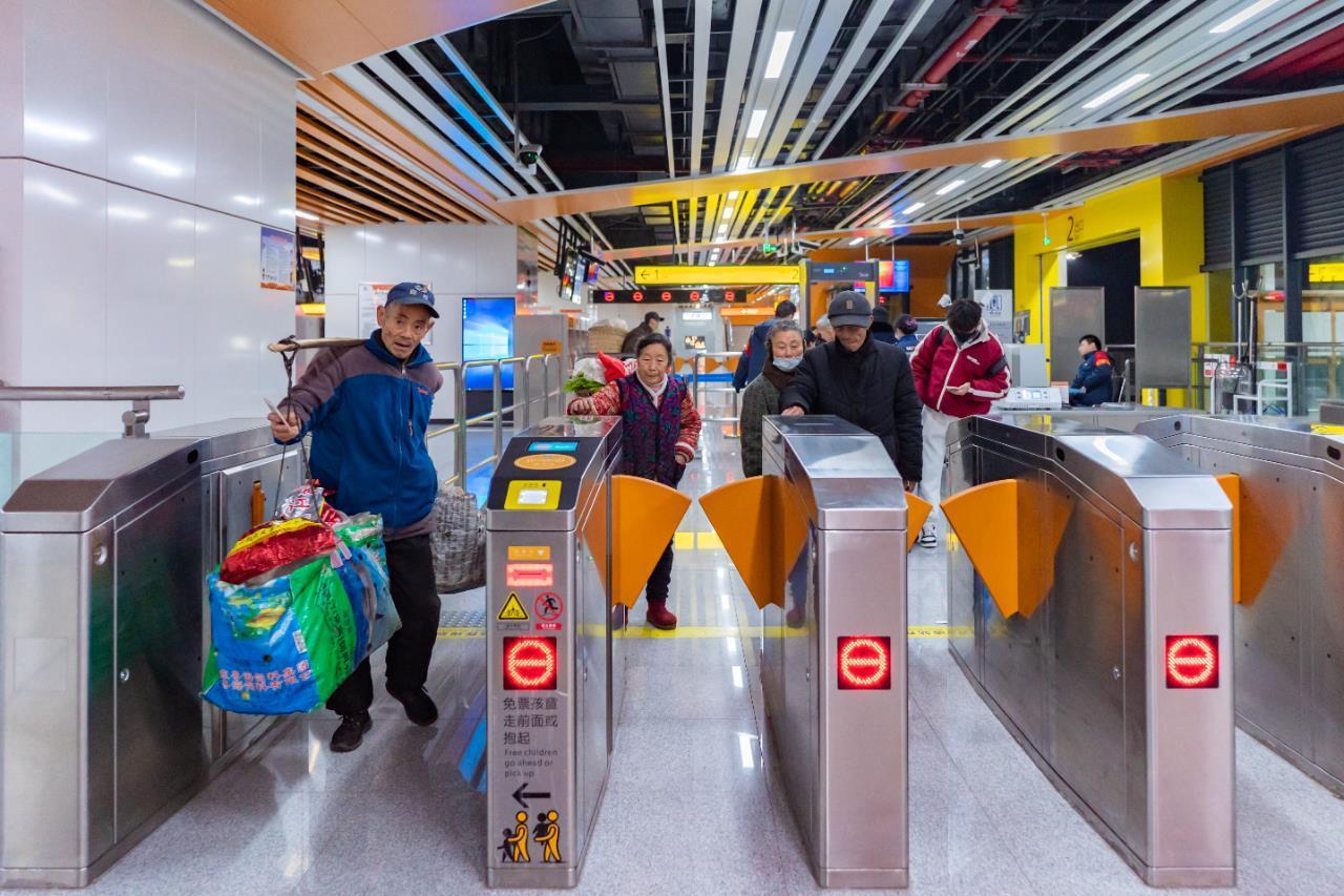 每天清晨6时许,4号线石船站的出入口都会迎来一群特殊的乘客。他们或背着背篓,或用一根扁担挑着竹篓,里面装满了新鲜的当季蔬菜;还有人将背篓固定在带有滑轮的小推车上,拉着小推车来到站门口……