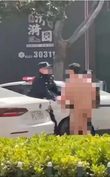 内容为“警察制止裸体男子”的视频,可以看到视频中警车的车牌为皖L,事发地应为安徽宿州。