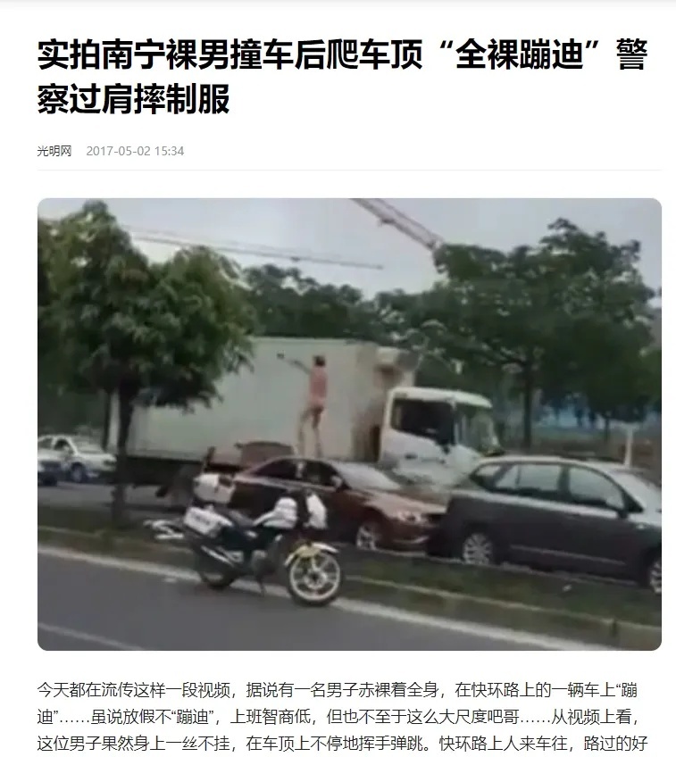 视频内容为“一裸体男子被交警制服”的视频,事发时间应为2017年,并非近期发生的事件。