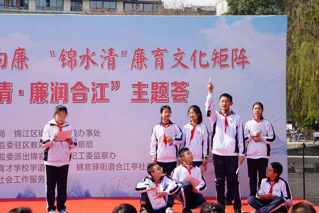 在世界水日、中国水周来临之际,四川成都锦江区“溯源护清,廉润合江”主题活动,在成都市七中育才学校学道分校举行。活动以“锦水清”廉洁文化矩阵为牵引,联合校家社力量,深挖合江亭优势资源,以“护水”为主线,创新廉育活动,厚植锦江廉洁土壤。