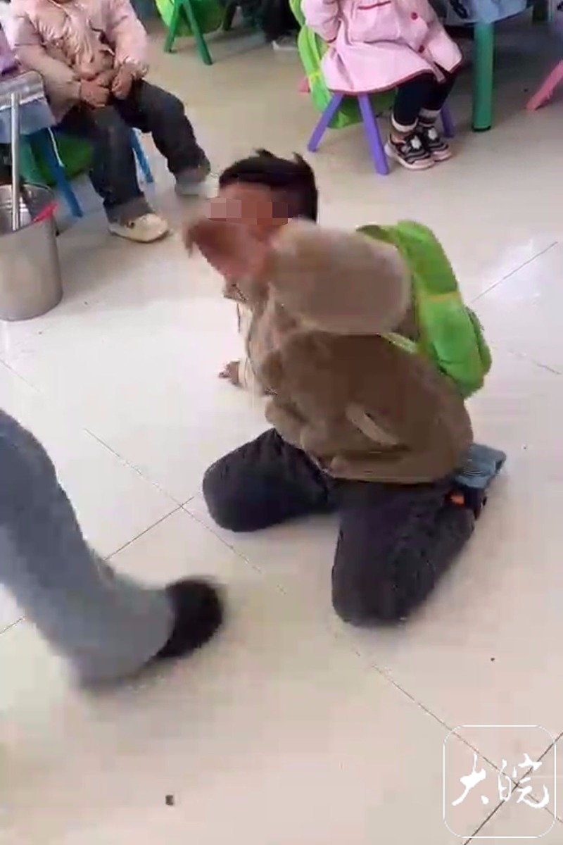 3月25日上午,一名自称是虞城县镇里固乡的村民告诉大皖新闻记者,视频中身穿咖色衣服背着绿色书包的男童就是他邻居家的孩子。男童大约五岁,平时和爷爷奶奶一起生活。3月25日,在外打工的父母得知此事后赶回家中,已经去幼儿园讨要说法。