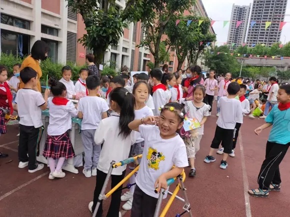 去年,小雅第一次参加运动会时开心地留影。受访者供图