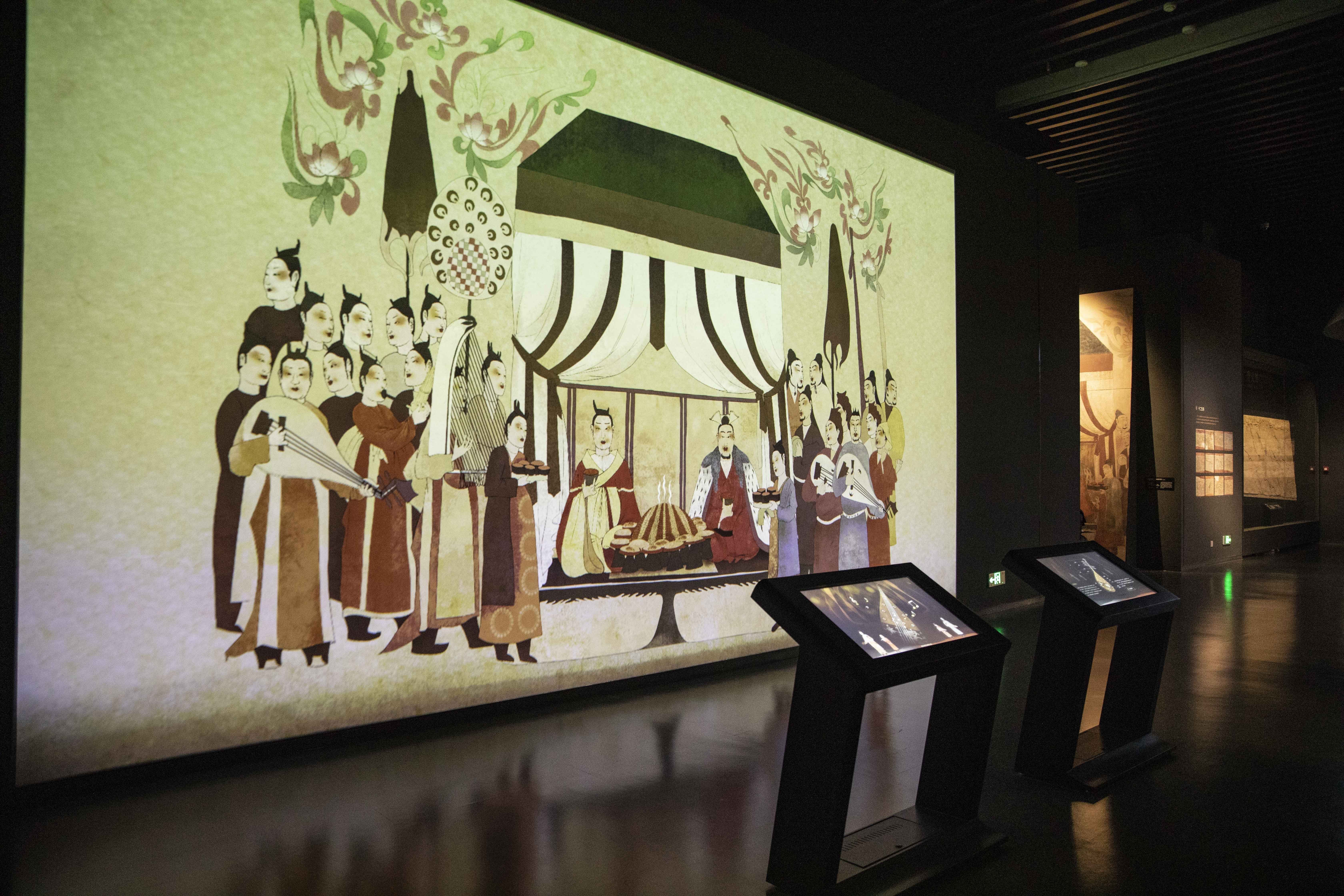 徐显秀墓北壁壁画《宴饮图》互动投影墙。王帆 摄
