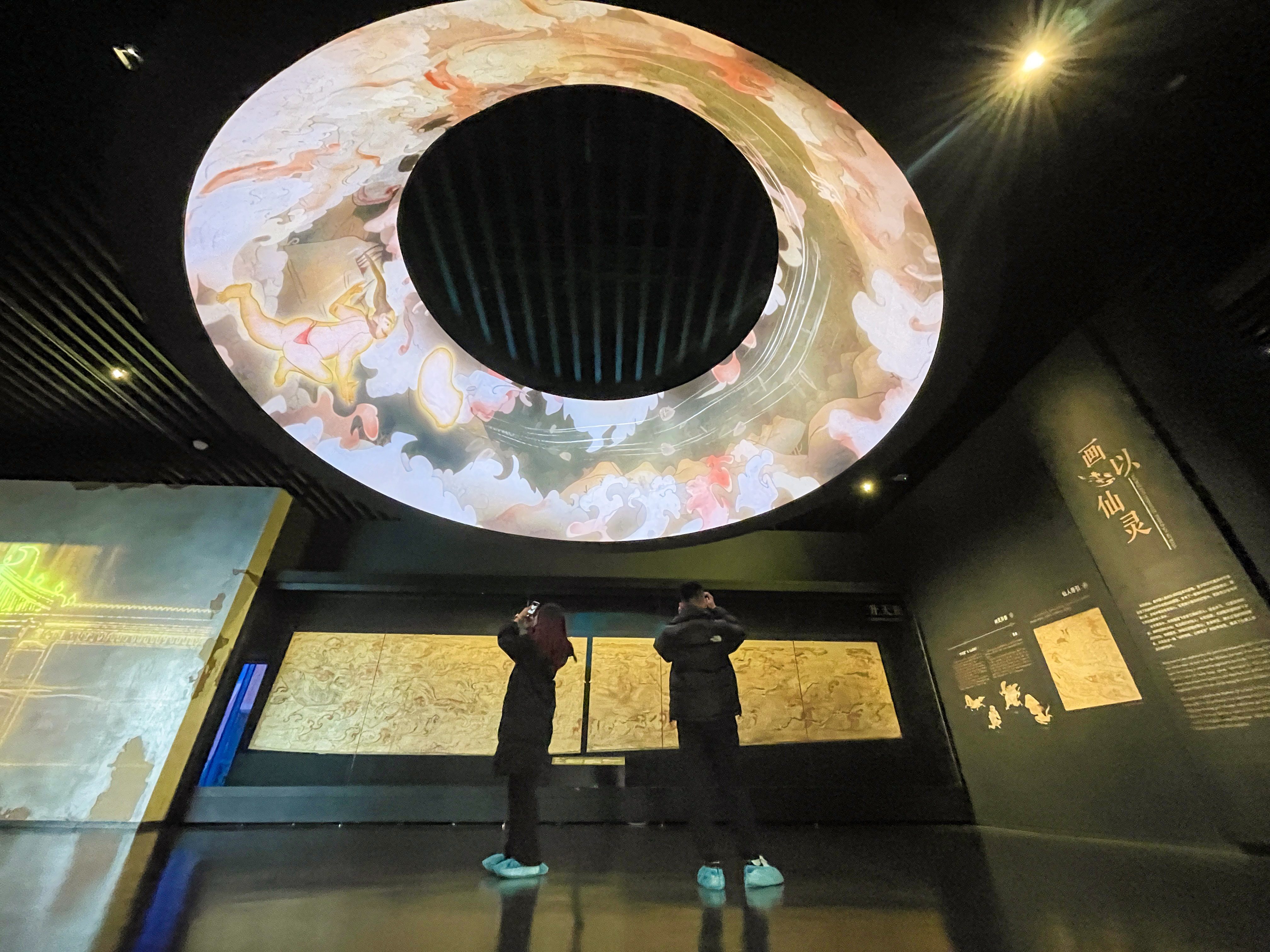 整个展馆3800余平方米,分为壁画厅、遗址厅、临展厅3个空间。博物馆结合壁画原件、数字化展项、互动游戏等多种展陈手段,运用3D、AR、VR等数字技术,打造了多个沉浸式体验场景,营造“人在画中游”的奇妙之旅。
