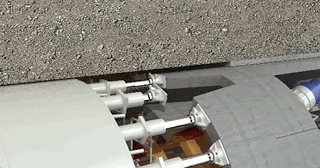 盾,即它的刀盘和盾壳,用来挖掘和防护。它靠着强大的推力和锋利的刀片,将地下土石一点点削凿出来,这个推力约能达到火箭的二十多倍。再利用内部输送带将土石运输至地面,工人还能同步在里面进行施工而不受影响。