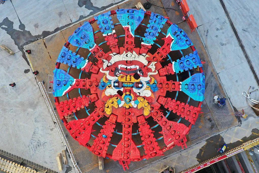最后,“带妆”工作,是“中国制造”的行走名片。在涂装上,中国的盾构机设计中加入了独特的文化特点,让“工程机械之王”这个“钢铁硬汉”看起来还有点可爱:涂装“瑞龙”“祥云”的“甬舟号”;画上“牡丹”的“牡丹13号”;加入熊猫元素的“锦绣号”、广东醒狮元素的“深江1号”;涂装“龙鲤”元素的“东湖号”……