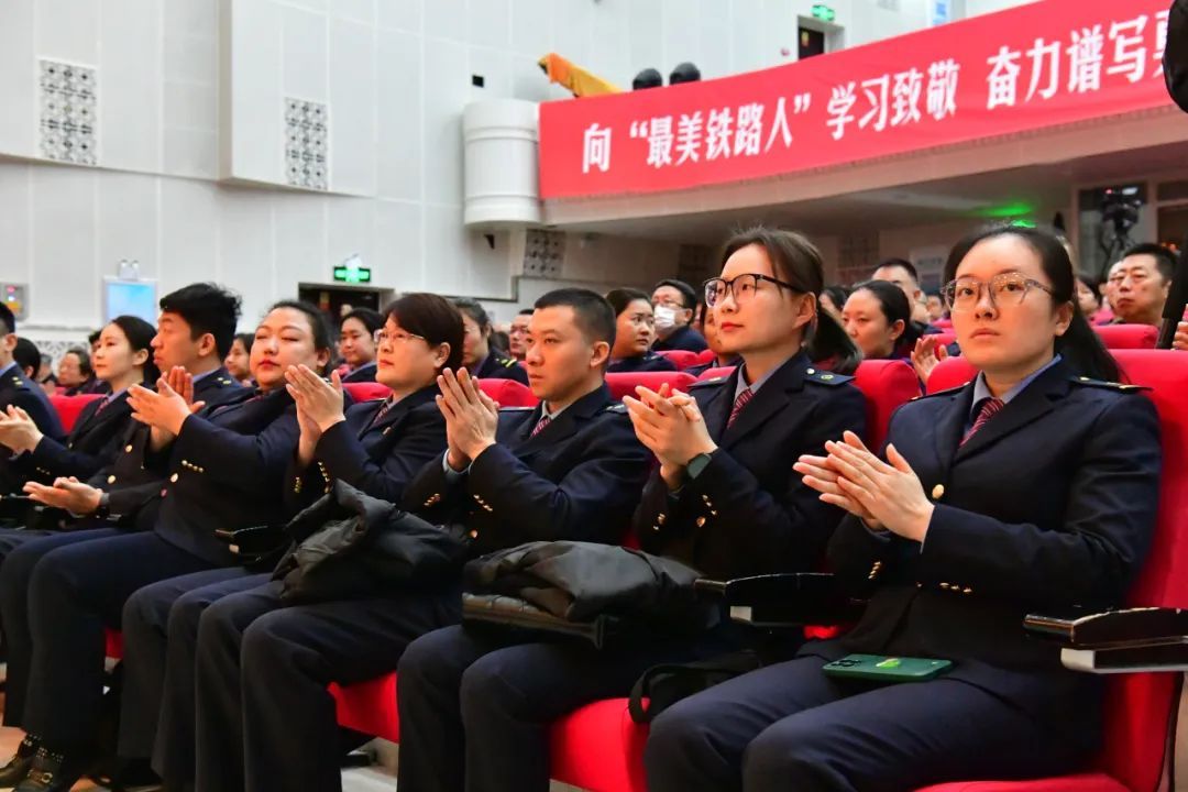 乌鲁木齐局集团公司领导班子、机关各部门负责人、基层站段4000名干部职工和新疆铁道职业技术学院5300名师生在现场或通过电视电话会议聆听了“最美铁路人”的先进事迹。