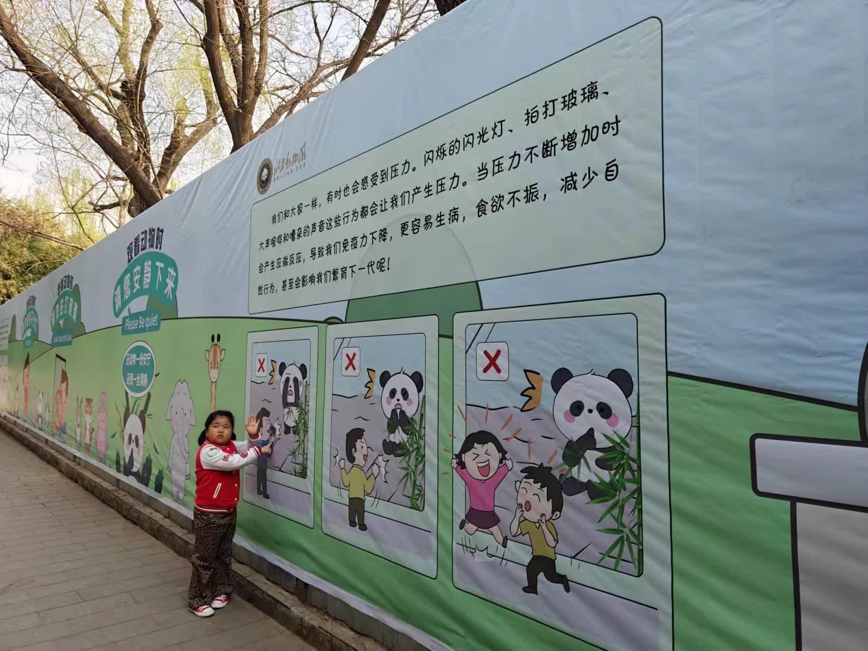 大熊猫馆无疑是北京动物园内人气最旺的热门场馆。刚走进大熊猫馆,一面巨幅的宣传展板就映入眼帘。“我们和大家一样,有时也会感受到压力,闪烁的闪光灯、拍打玻璃、大声喧哗和嘈杂的声音,这些行为都会让我们产生压力。当压力不断增加时,会产生应激反应,导致我们免疫力下降,更容易生病,食欲不振,减少自然行为,甚至会影响我们繁育下一代呢!”看完展板上的提示,许多小朋友恍然大悟——原来这些行为都会对大熊猫产生不好的影响。记者看到,馆内也张贴着“禁止使用闪光灯”“请勿大声喧哗”的宣传牌示,同时在人员密集处摆放了安全围栏,既保持了观赏的最佳距离又最大限度地避免了游客拍打玻璃等不文明行为。