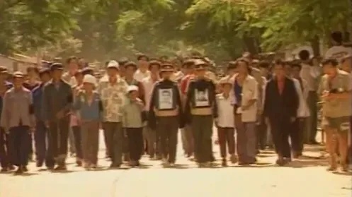老百姓扛着祭奠花圈