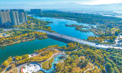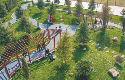 各地把绿色发展理念融入城乡规划建设管理之中,不断完善城市公园体系和绿道网络,高品质生态环境成为城市高质量发展的重要支撑。图为山西省运城市禹都公园,草木茂盛,景色怡人。