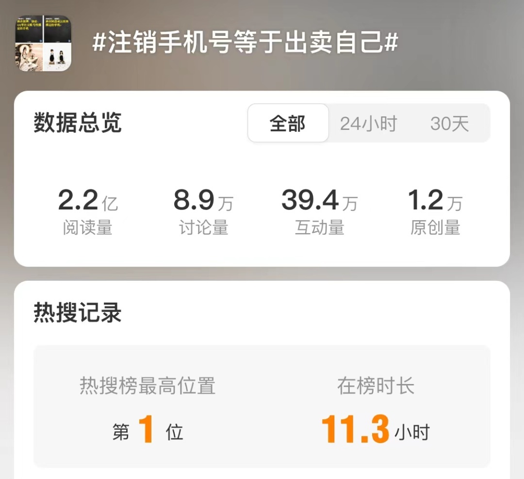 “注销手机号等于出卖自己”的话题