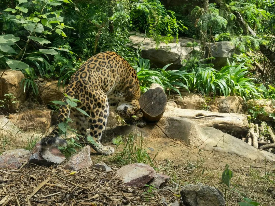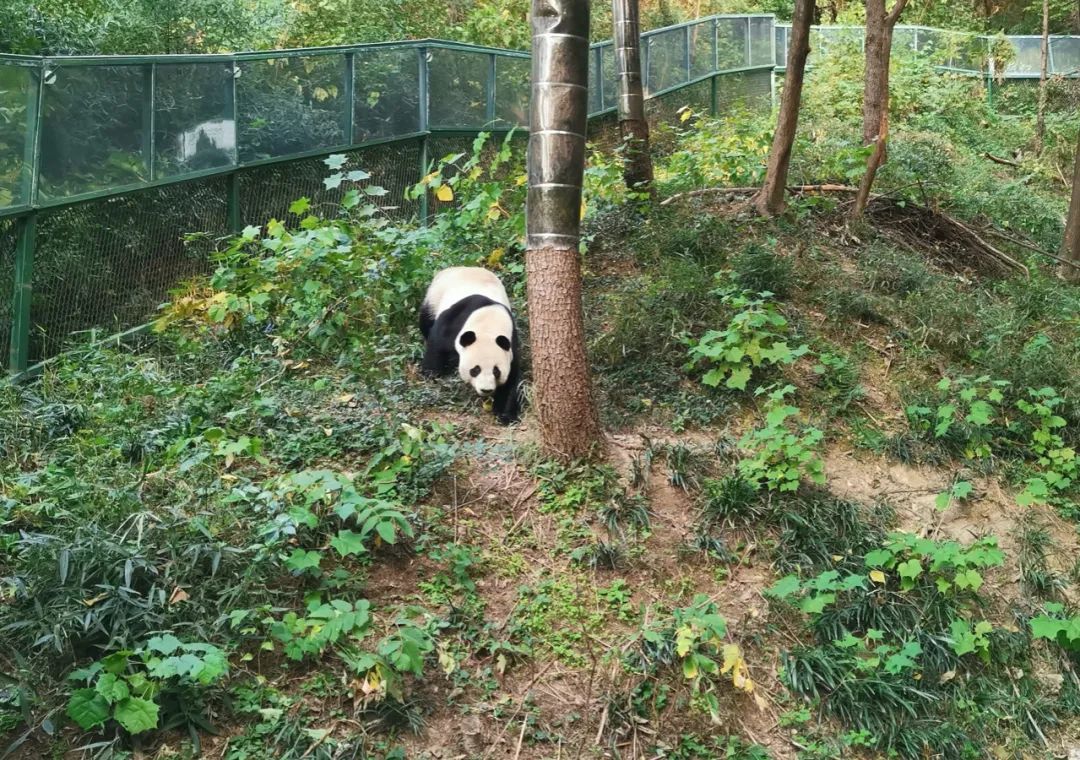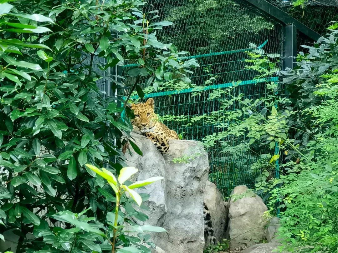 ——可以爬山了!豹子越越最爱待在高处。猫科馆的笼舍里植物丰茂,有的笼舍靠山坡搭建,给了善于攀爬的猫科动物们更加理想的环境,从高处俯视领地也能给它们更多安全感。