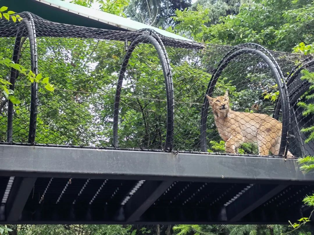 欧亚猞猁二王正在通过天猫通道。本报记者邱冰清 摄