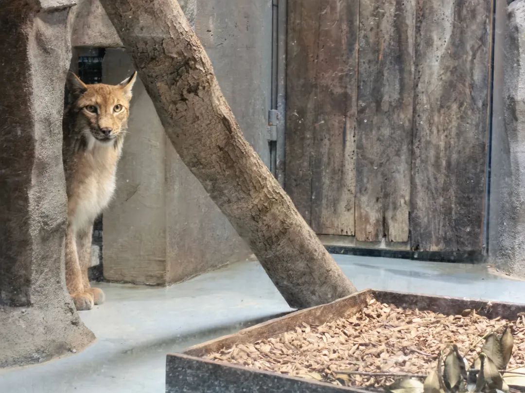 “二王,二王,二王……”早晨,猫科馆饲养员姜尧,正一声声呼唤名叫“二王”的欧亚猞猁,“催”其从内场走进它当日的外场笼舍——6号。
