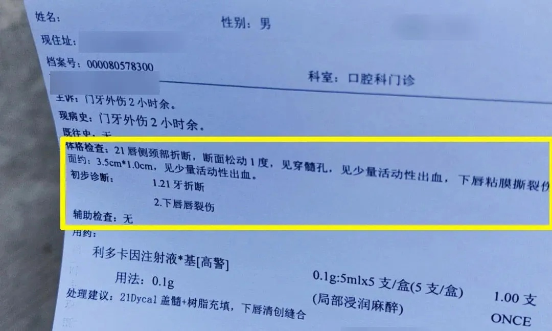 却因此牙断了3颗,嘴巴缝了8针