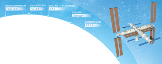 1987年8月,我国第九颗返回式卫星首次搭载水稻、辣椒等种子,开启了我国农作物种子的太空之旅。据介绍,目前我国已进行航天育种搭载实验3000余项,育成主粮审定品种260多个,蔬菜、水果、林草、花卉新品种上百个,年增产粮食20多亿公斤,创造直接经济效益逾千亿元。
