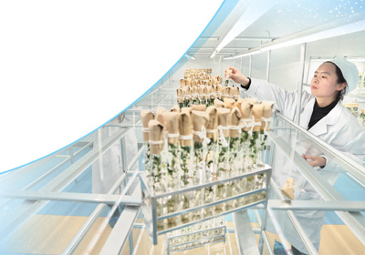 内蒙古自治区商都马铃薯技术创新中心,科研人员在观察太空马铃薯种子组培苗。