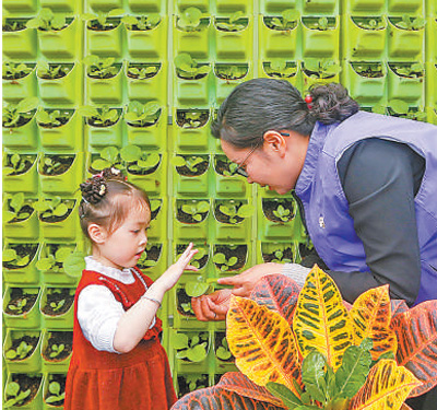 安徽省歙县,航天育种基地的工作人员向小朋友介绍太空种子培育出的植物。