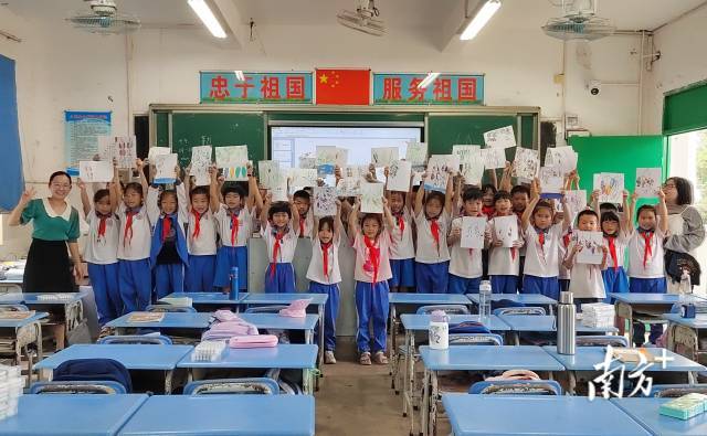 2021年开始,广东海洋大学在广东省教育厅的指导下,对湛江市湖光第一初级中学、湖光第二初级中学等四所学校进行帮扶,组建团队开展美育教育,过去一年累计完成317学时,远超教育部门每年100学时的要求,“朝夕相处之下,很多学生对我们都很熟悉”。