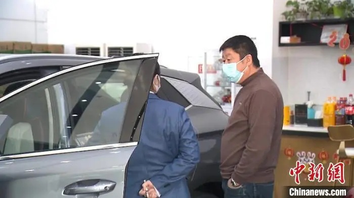 资料图:市民向销售人员了解纯电汽车的补贴政策。张践 摄