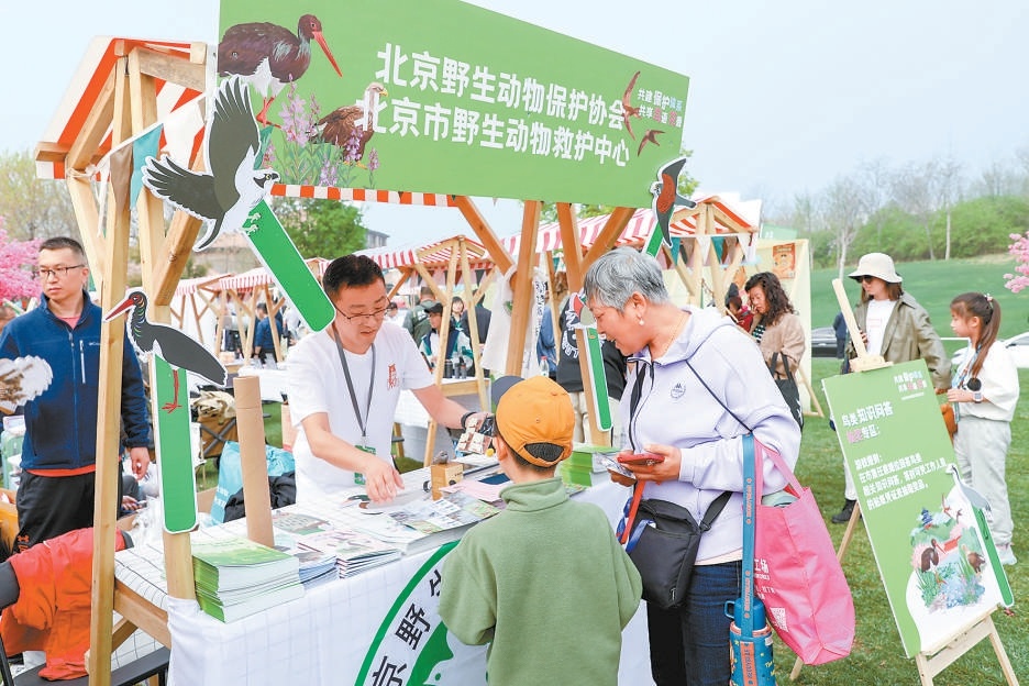 家长和小朋友在“爱鸟周”启动仪式上了解野保知识。何建勇摄