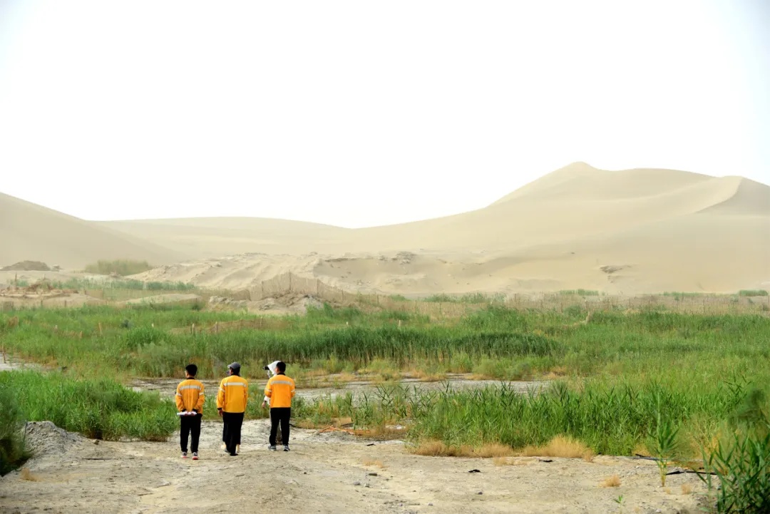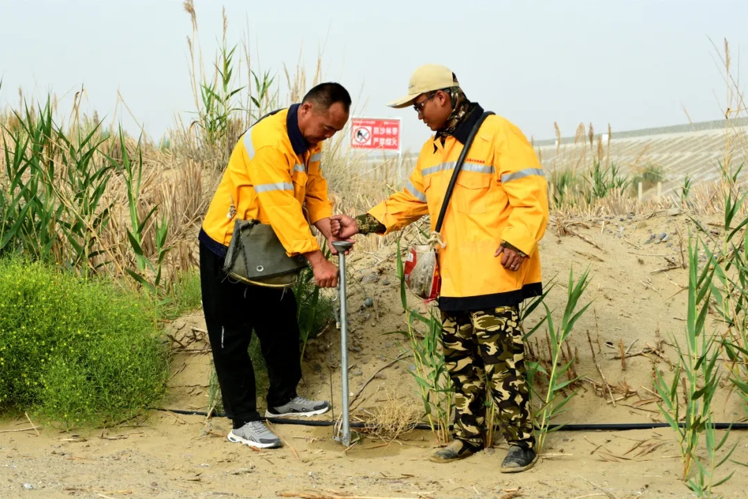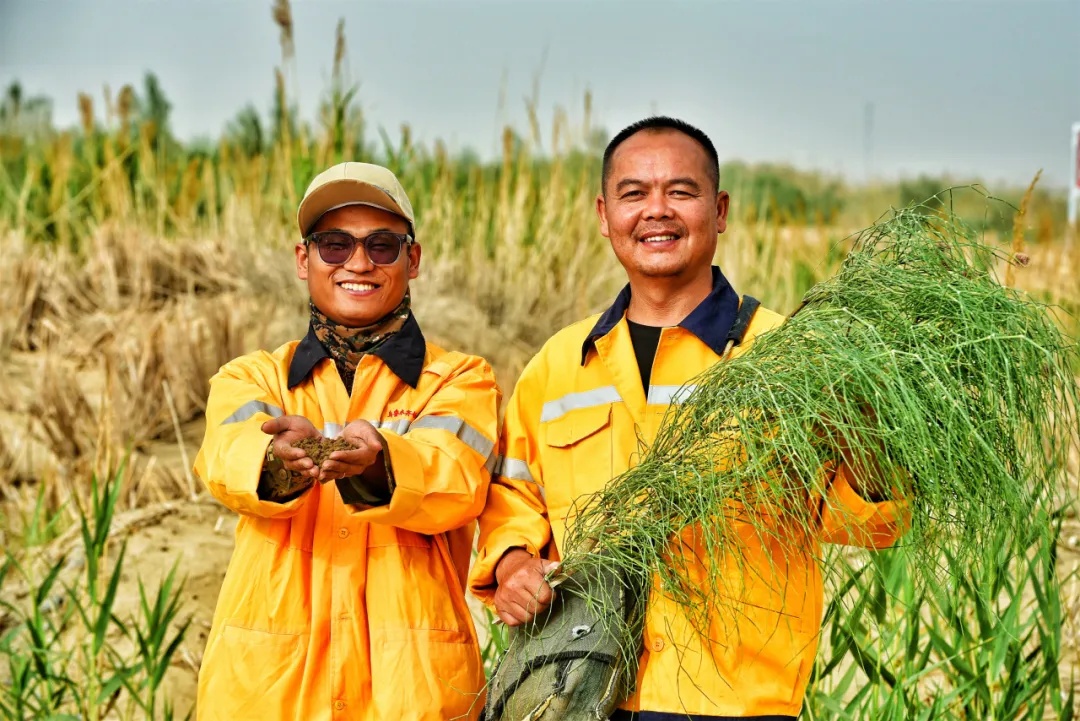 “自己负责的片区一定看仔细啊!不要漏种!”在和若铁路线路旁的防沙林里,一派热火朝天的景象。“绿色卫士”们有的扶稳芦苇沙障,有的检查滴管状态,有的忙着种下种子。他们利用春秋两季集中对缺损地段进行补种,保证铁路行车安全。