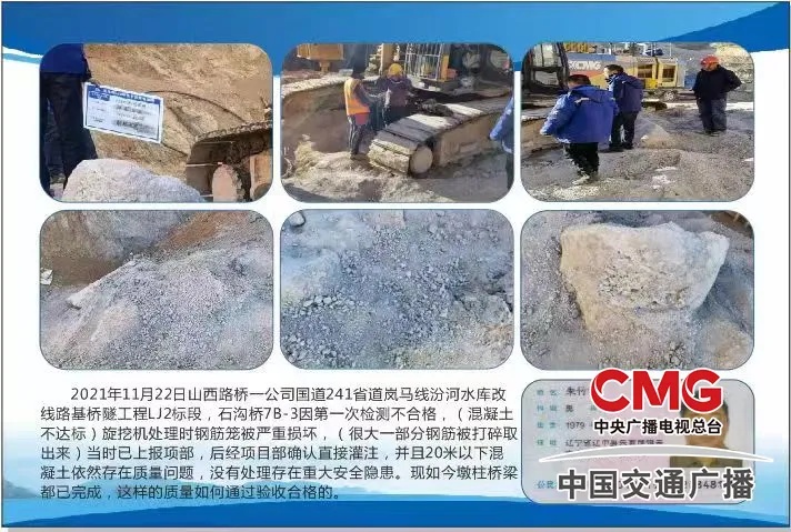 这个工程的LJ2 标段劳务分包商朱竹林实名举报称,该标段石沟桥7B-3 桥墩的旋挖桩基础设计桩长为57米,基桩成孔灌注混凝土后,经第三方质检机构抽检,认定为混凝土质量不合格。质检部门要求项目部对7B-3 桩基进行处理,重新浇灌合格的混凝土。