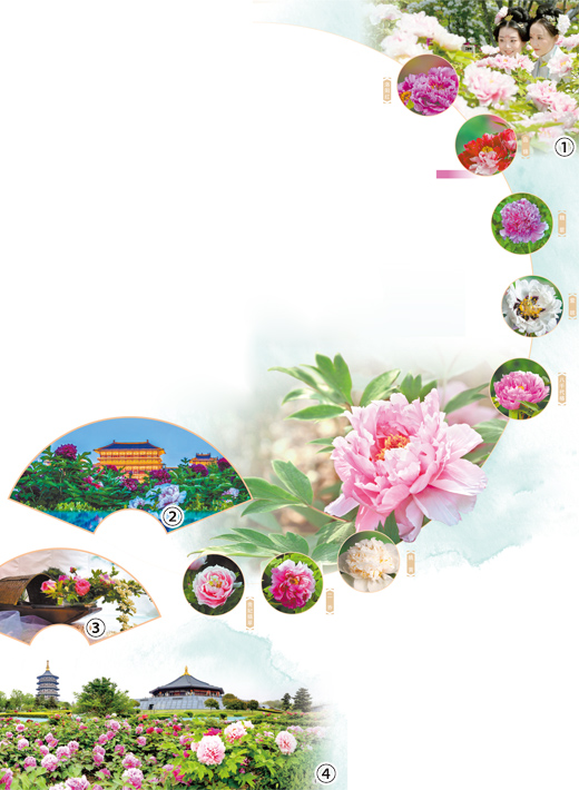 图④:洛阳隋唐城国家遗址公园内,牡丹花盛开。