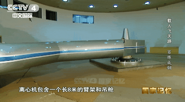 离心机是航天员提高超重耐力最有效的设备,包含一个长8米的臂架和吊舱。
