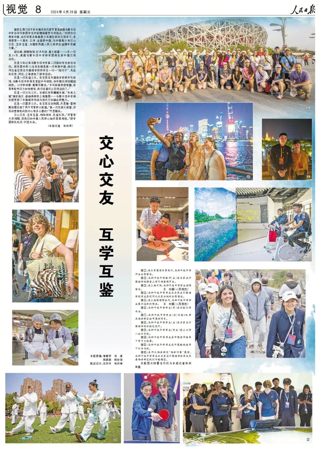 这是一次文化之行。古都北京的巍峨长城、“未来之城”雄安新区、清幽秀丽的上海豫园……马斯卡廷中学师生感受到了中国城市传统与现代交织融合的魅力。