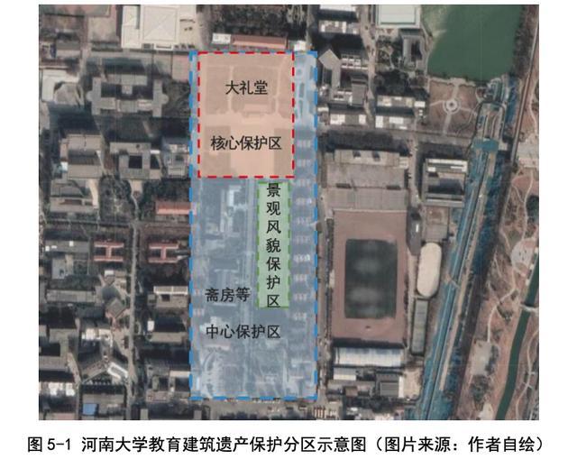 河南大学教育建筑遗产保护分区示意图。论文截图